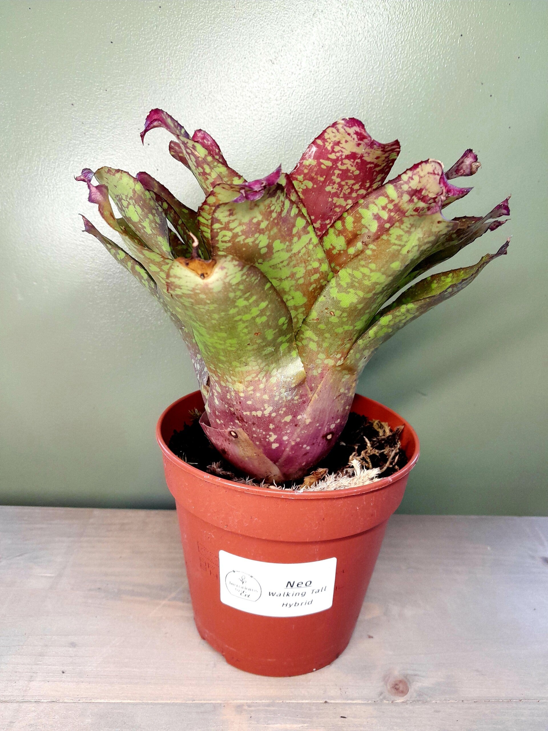 Deze bromelia heeft een groene kleur met een rood hart.